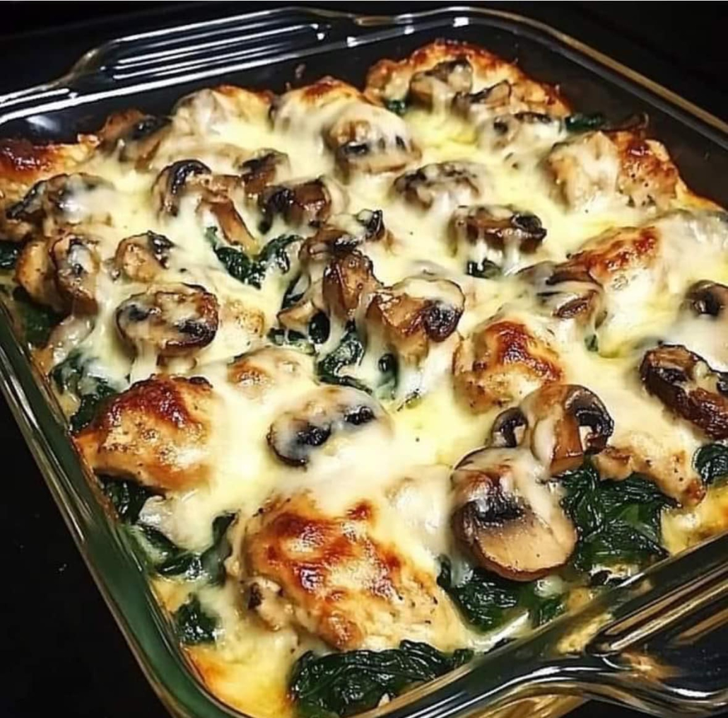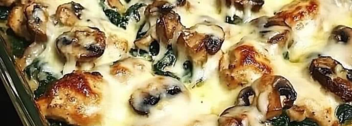 CHICKEN SPINACH AND MUSHROOM LOW CARB OVEN DISH