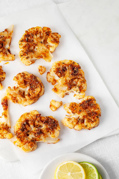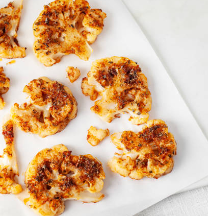 - In a large bowl, toss cauliflower florets with olive oil, garlic, paprika, salt, and pepper until evenly coated.
